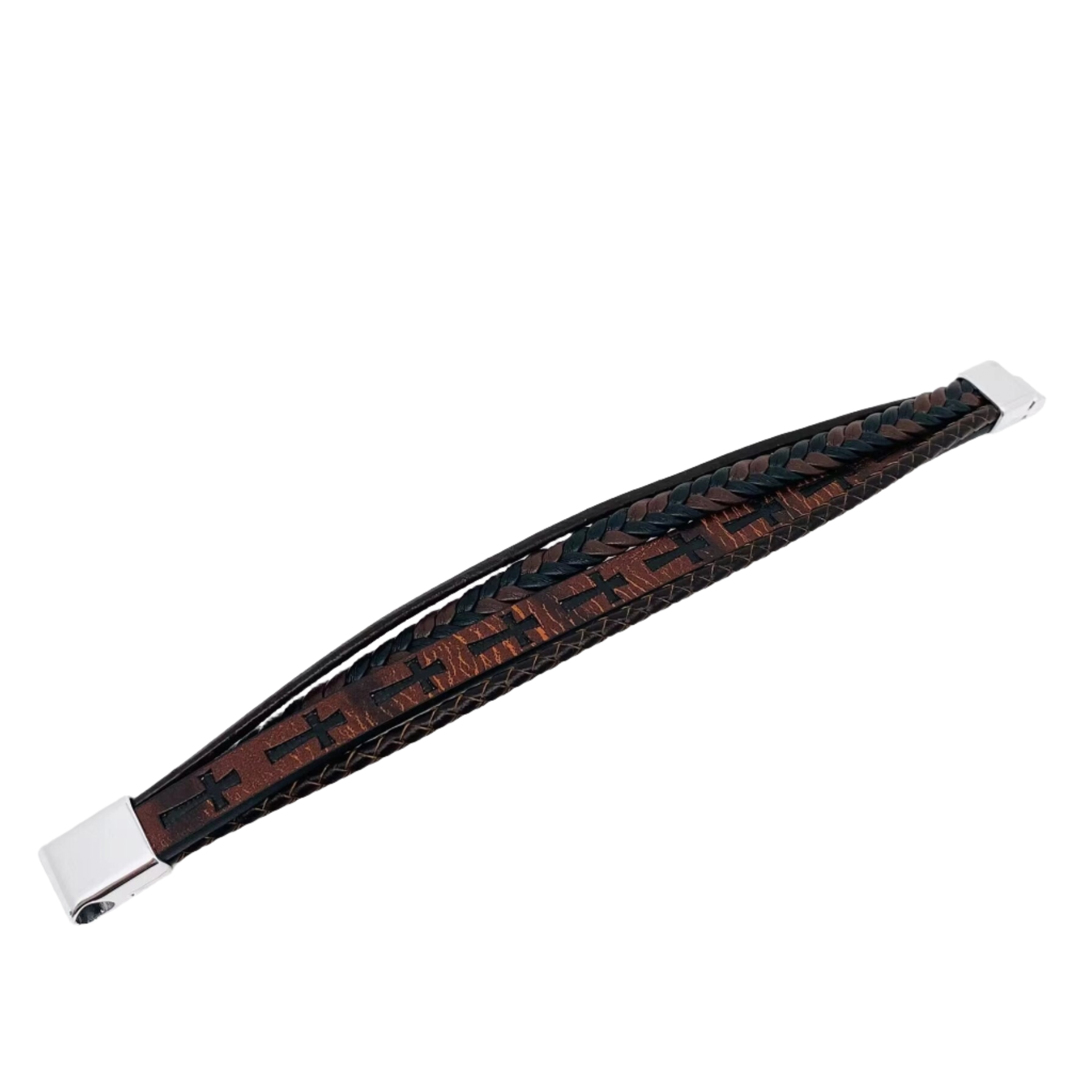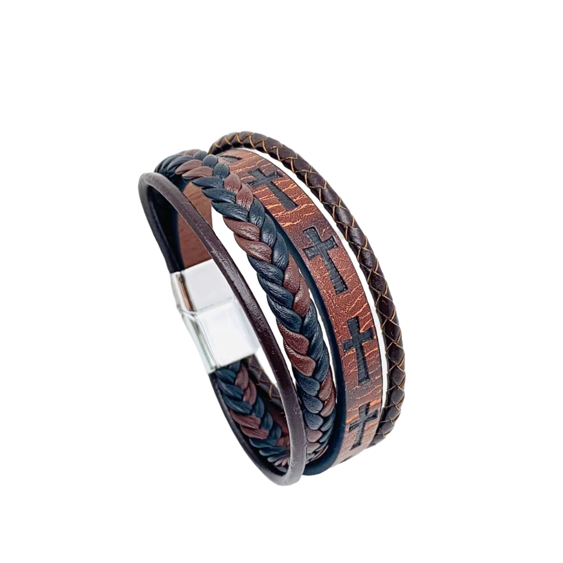 Men's Handmade PU Leather Cross Magnetic Bracelet.