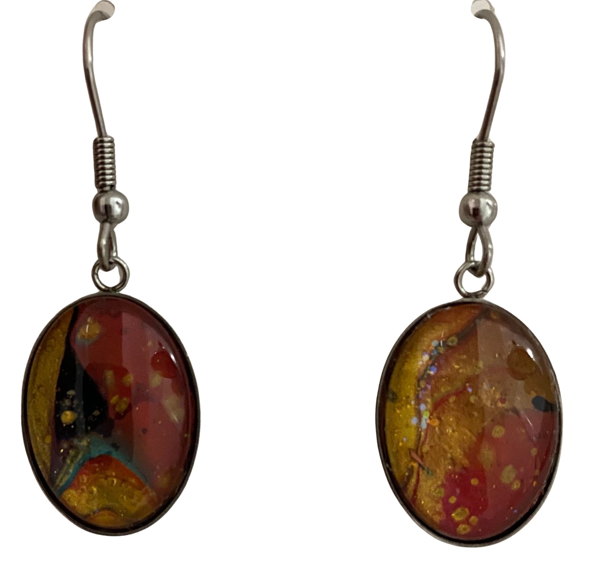 Red, Yellow, Black and Blue Art Jewelry Dangle Earrings . Handmade with Stainless Steel components.