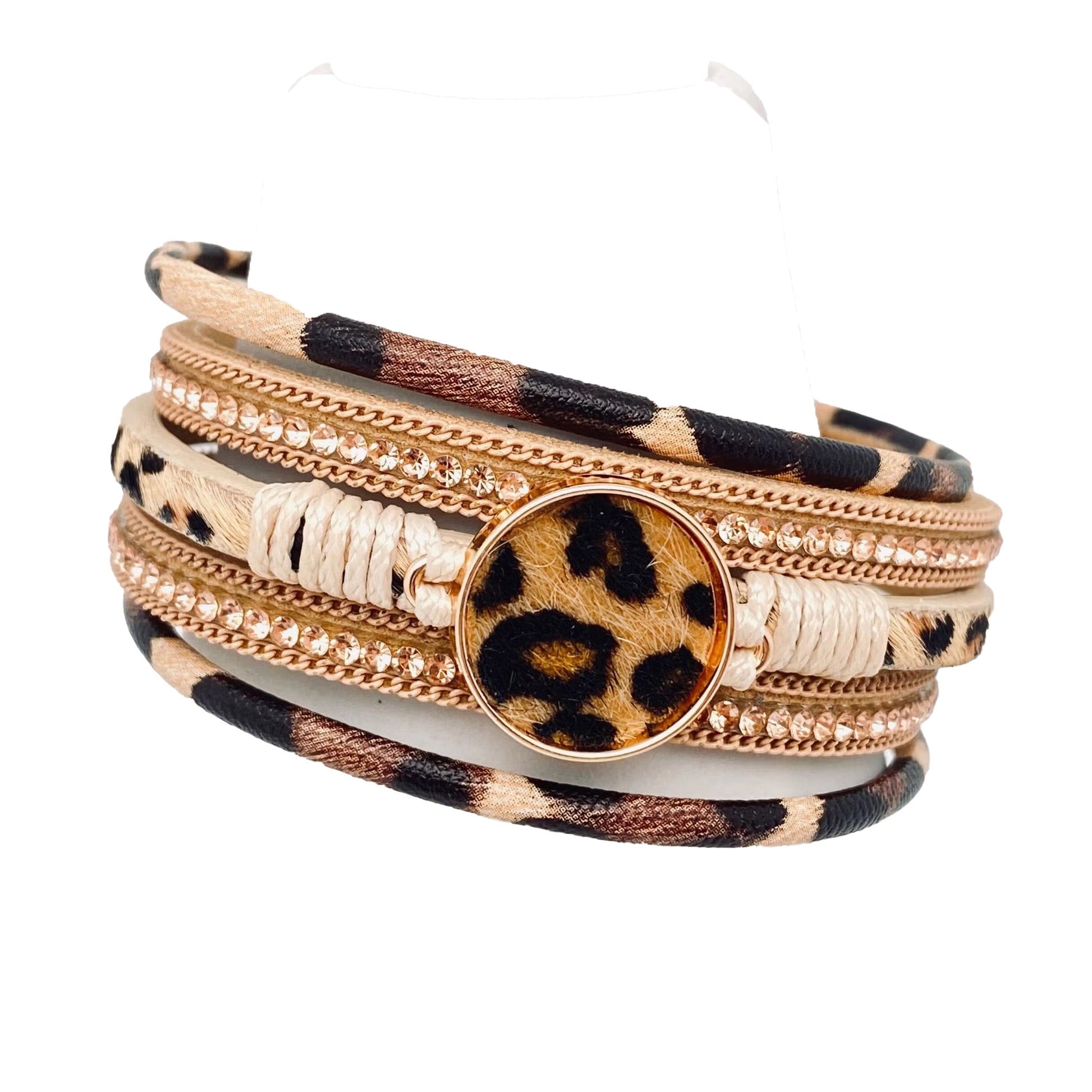 Multi-layer Leopard Bohemian bracelet with magnetic clasp.