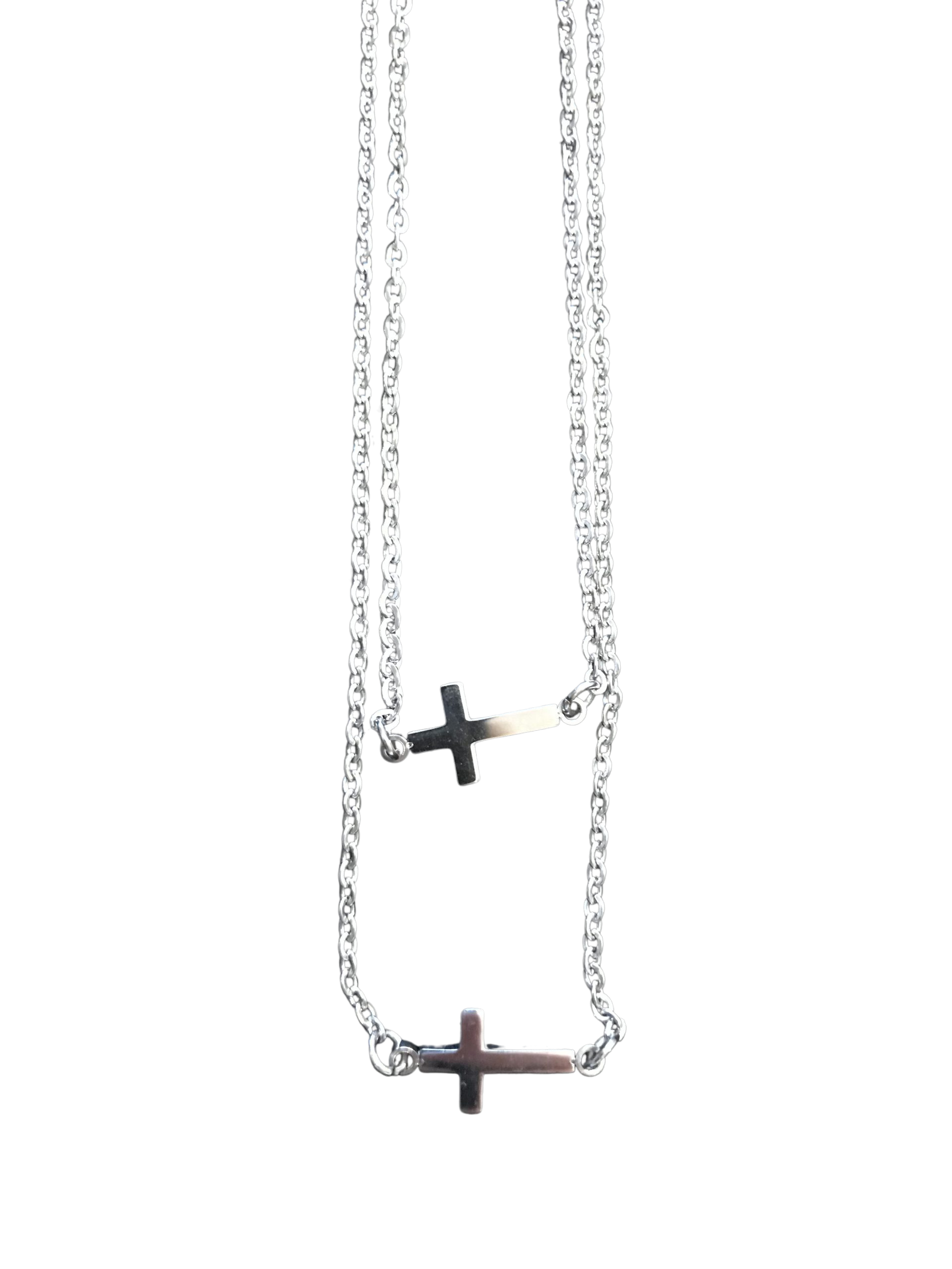 Stainless Steel Layered Cross Necklace Approximately 17"