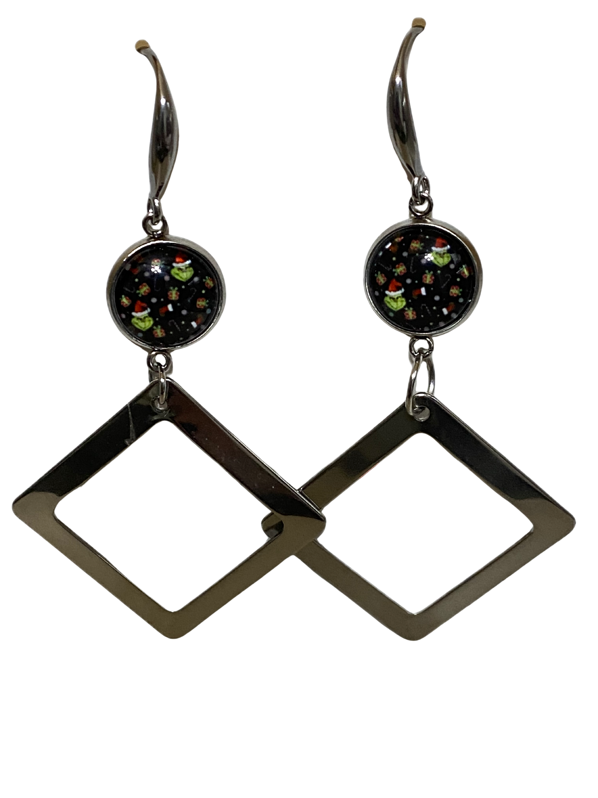 Stainless Steel Long Dangle Earrings. Long Stainless Steel Earrings with Triangles. Celebrate Christmas in style.Approximately 3 inches long.