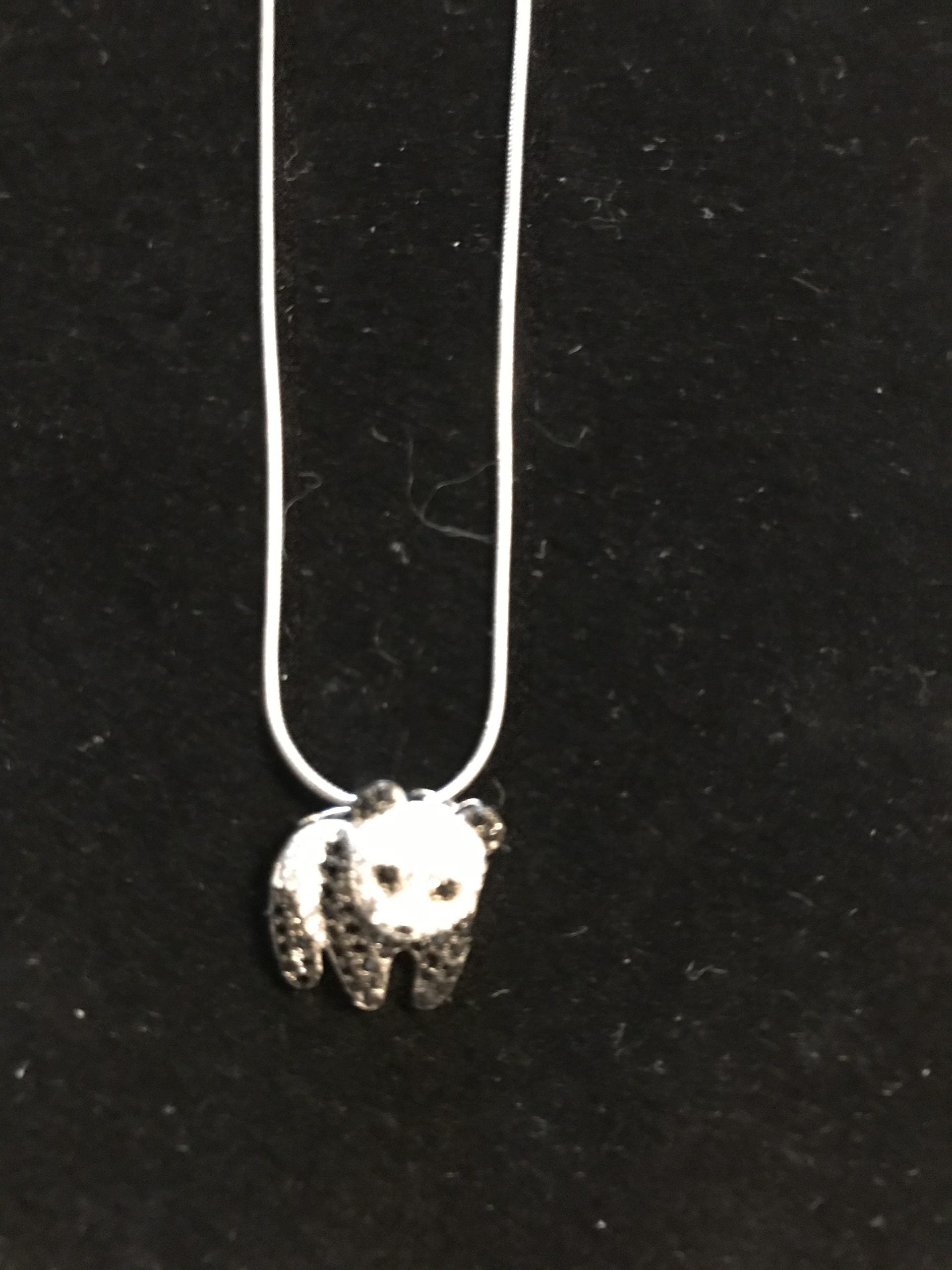 Sterling Silver and Cubic Zirconia Rhodium Plated Panda Bear Necklace - Chain 18" with 2" extension SRP $70