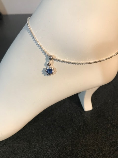 Sterling Silver Anklet with Blue Crystal Dangle